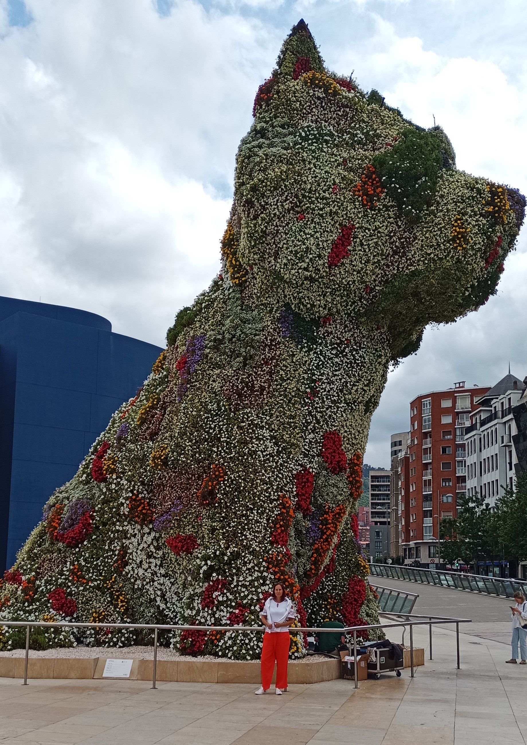 Was tun: Der Atlantik kündigt ein kleines Islandtief über Bilbao für den zweiten Tag unseres Aufenthaltes an, so dass wir den letzten Schönwettertag für eine einstündige Stadtrundfahrt nutzen. Die Stadt ist sicher einer der unterschätzten Schmuckstücke in Spanien, das wahrscheinlich wegen des Wetters weniger bekannt (und überlaufen) ist als Barcelona oder Madrid. Hier gibt es aber ebenfalls herrliche Architektur und einige Museen zu besichtigen, nicht zuletzt natürlich das Guggenheim-Museum, das mit dem „Puppy“ von Jeff Koons – einem 20 m hohen Plüschhund aus echten Blumen – grüßt.