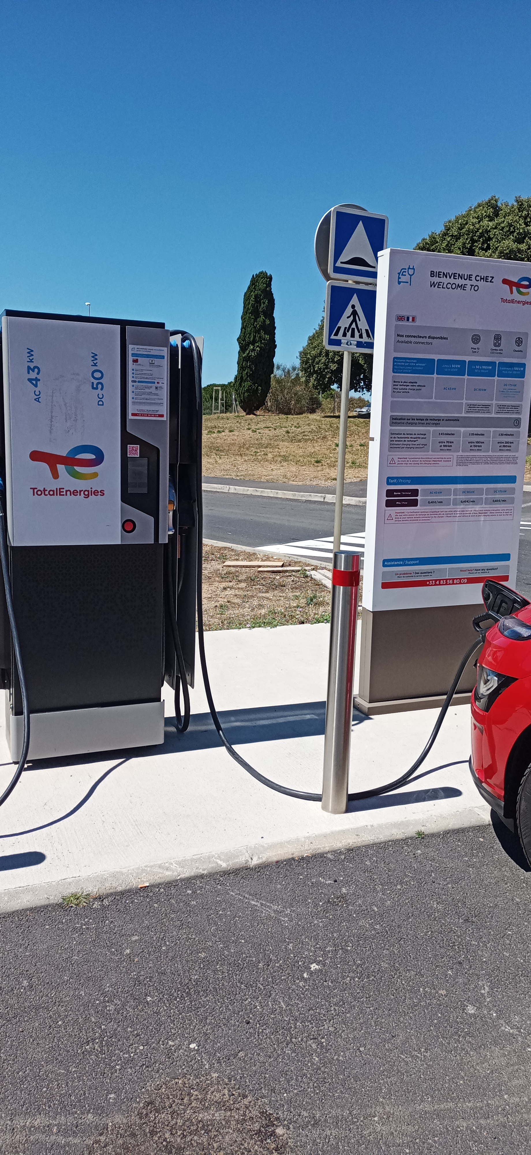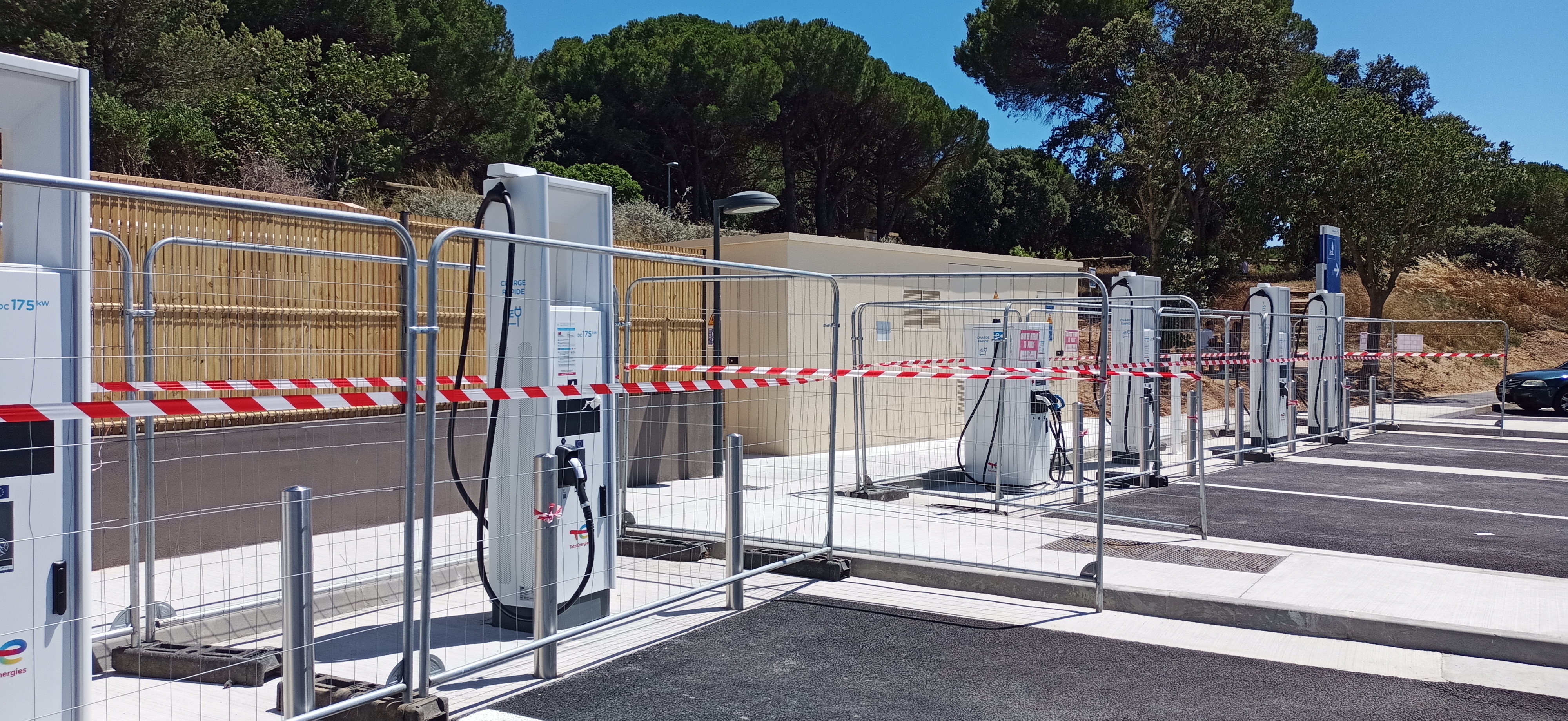 Nagelneue 8 Lader hätten es dort sein können, alle noch außer Betrieb, statt dessen mußten wir an der einzigen funktionieren Säule warten bis sie frei war.